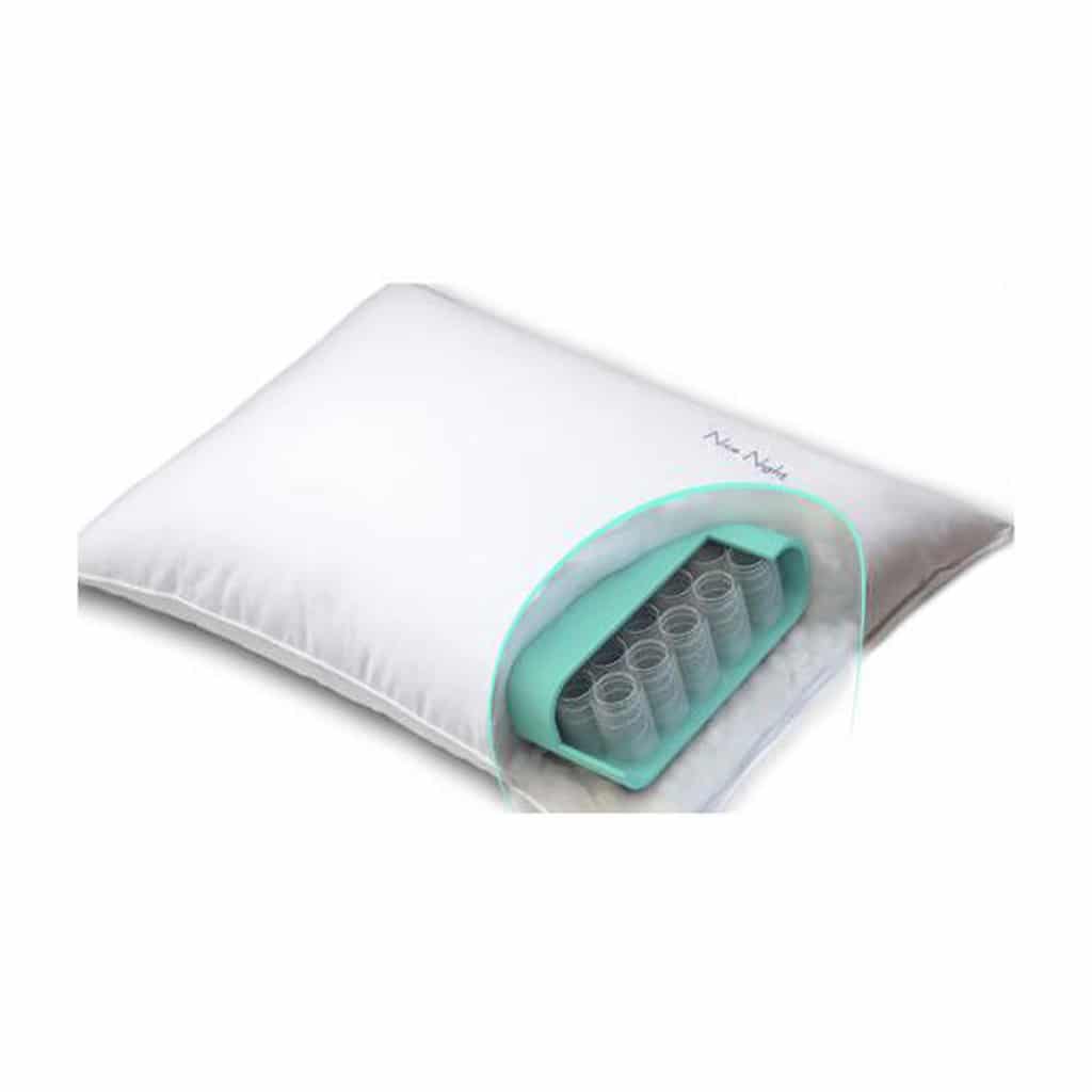 The core of the pillow is made of gentle independent coils, capable of ensuring air flow and heat exchange with every movement of the head, while providing appropriate head-neck support for an ideal spine posture, which will resuly in enhanced well-being.The interactive smart pillow with polyester fiber and springs.